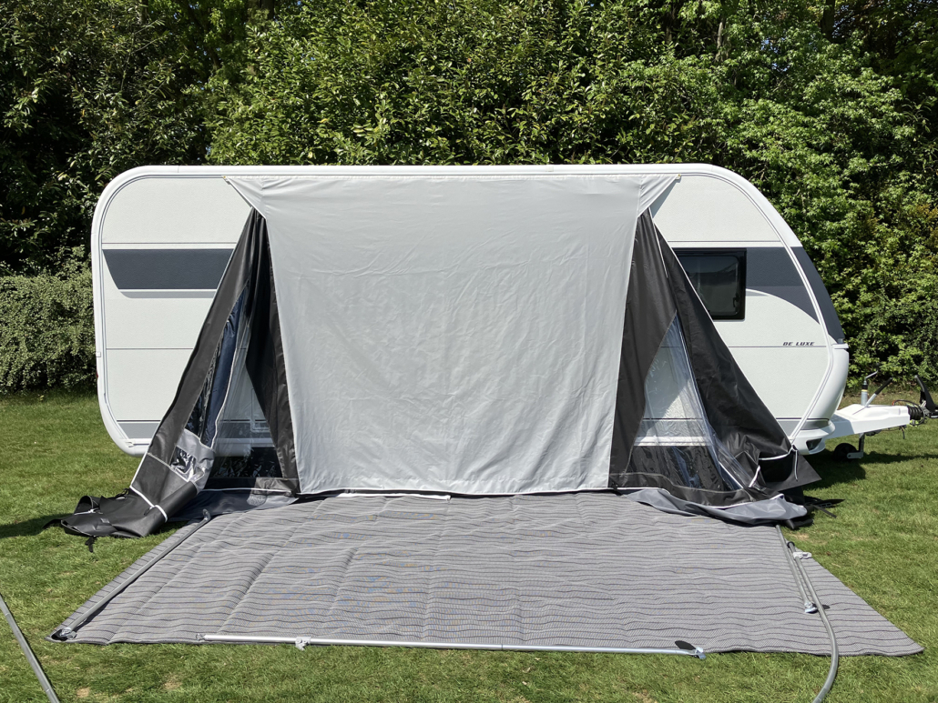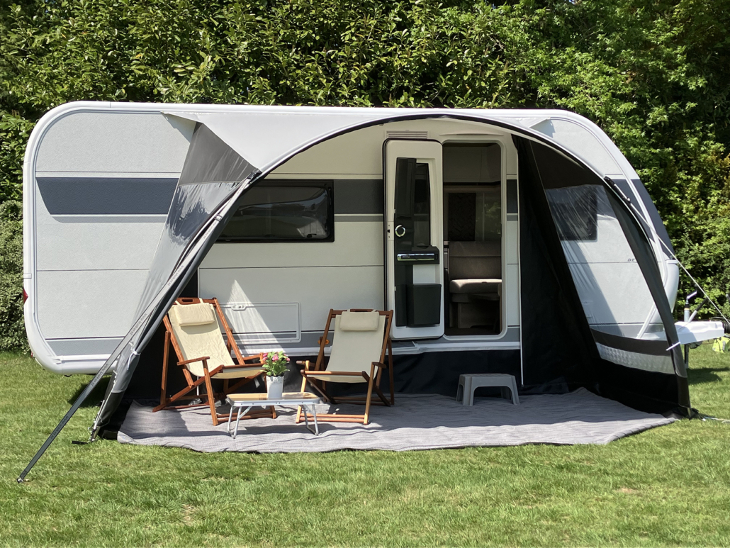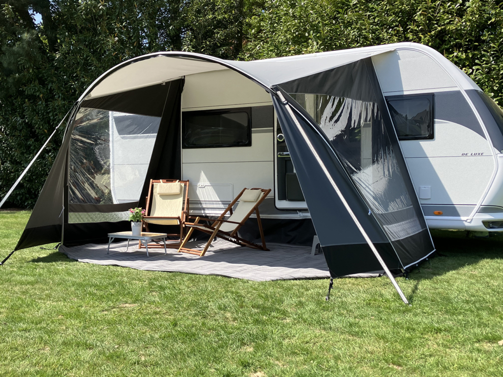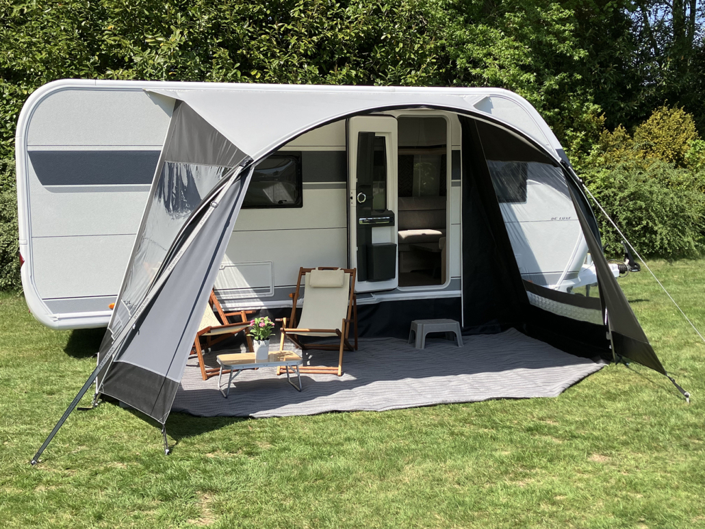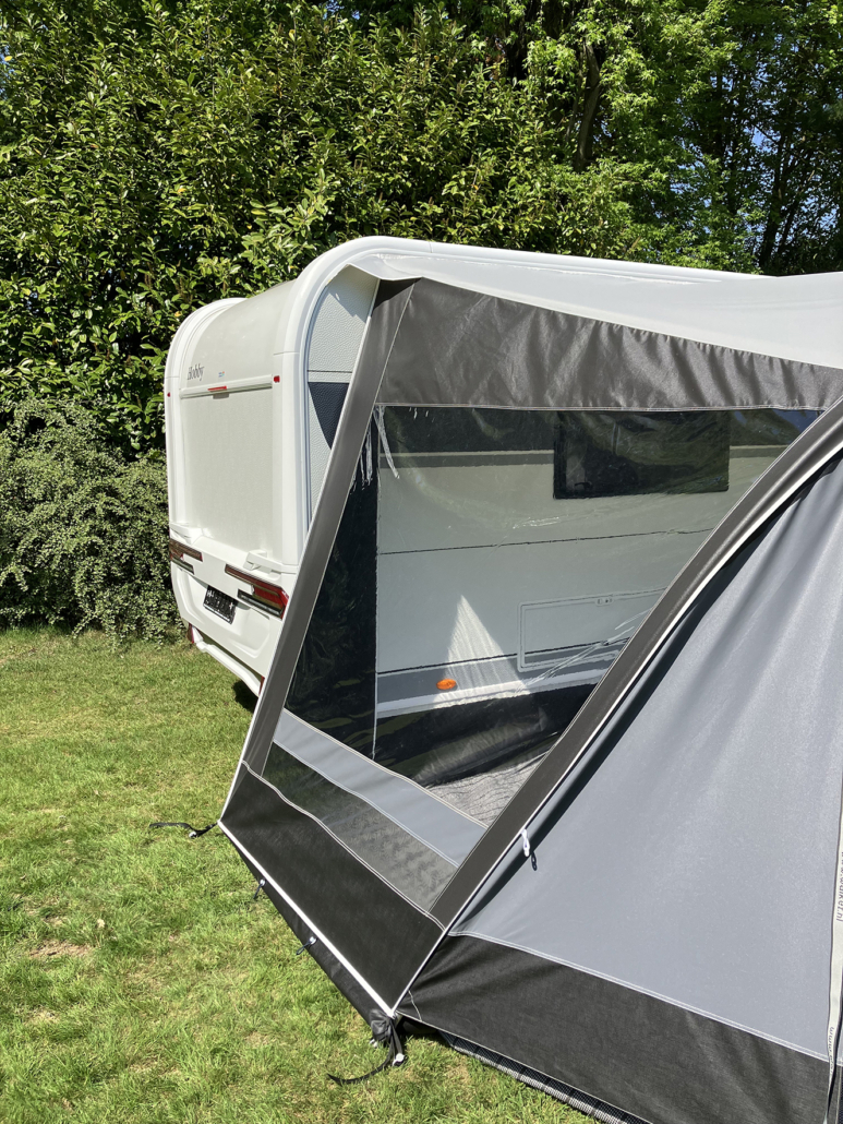 Låt inte storleken lura dig. Det här husvagnstältet trots sina endast 350 cm i tältskenan ger dig: